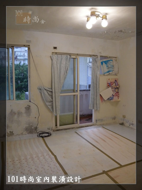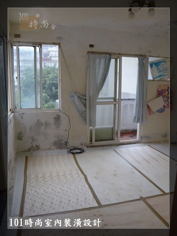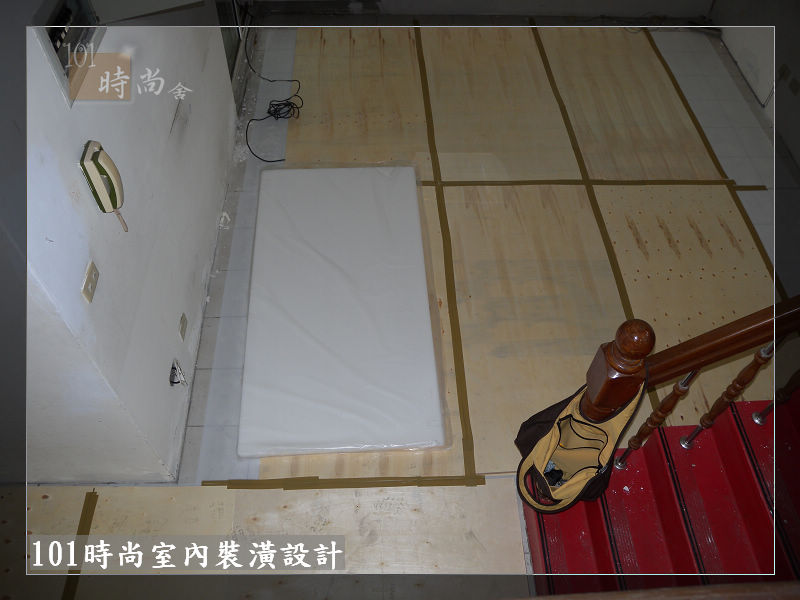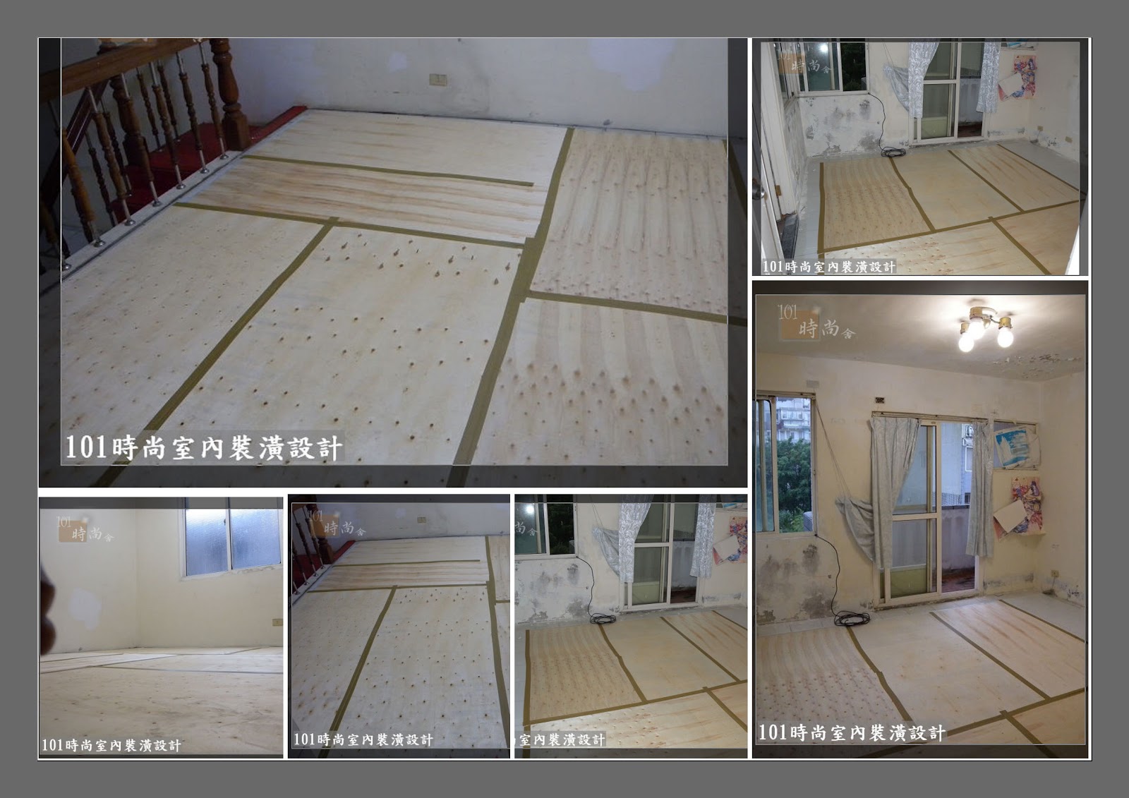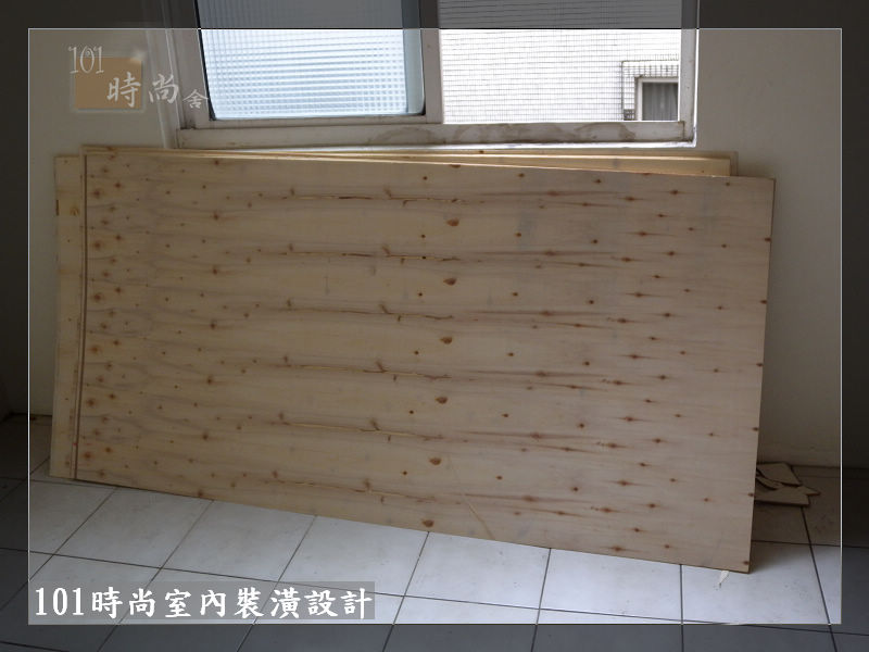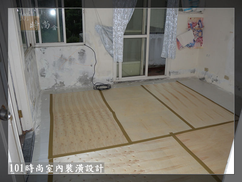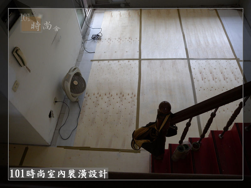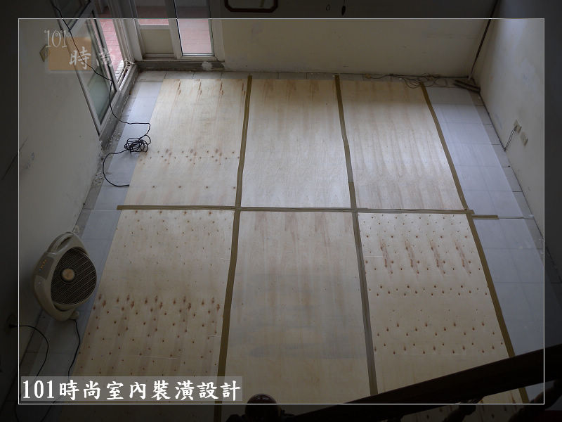 地板鋪設白色保護板+木薄板