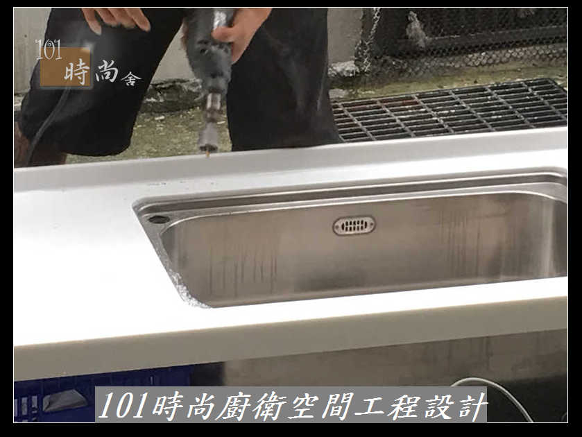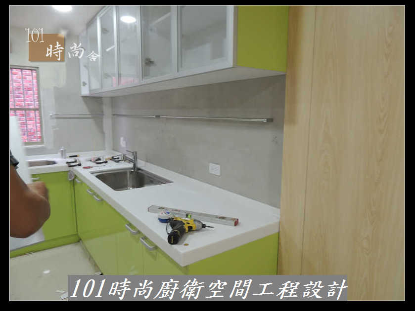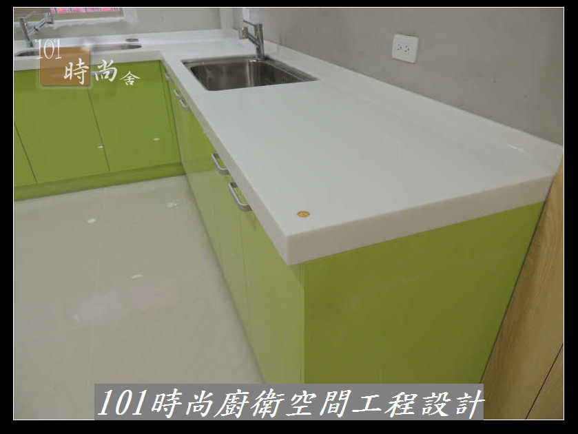 @新北市基隆瑞芳廚具工廠直營 廚具推薦 L字型廚房設計 101時尚系統廚具設計 韓國進口樂天(原三星)人造石 作品-瑞芳黎公館-韓國進口樂天(原三星)人造石+心板桶身+5面結晶鋼烤門板